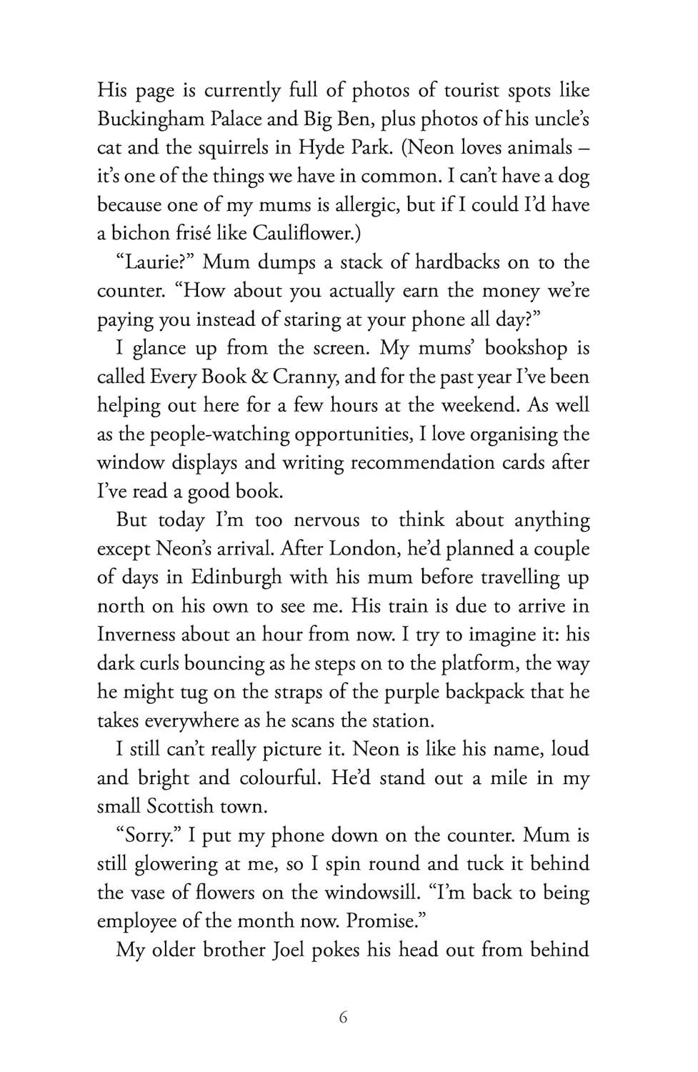 Laurie loves stories. She loves reading them in her mums' bookshop in their small Scottish town. She loves sharing them with new readers. She also loves telling stories about people she's not yet met and places she's not yet been. But when one of these people comes crashing into Laurie's world, it turns her whole life upside down.