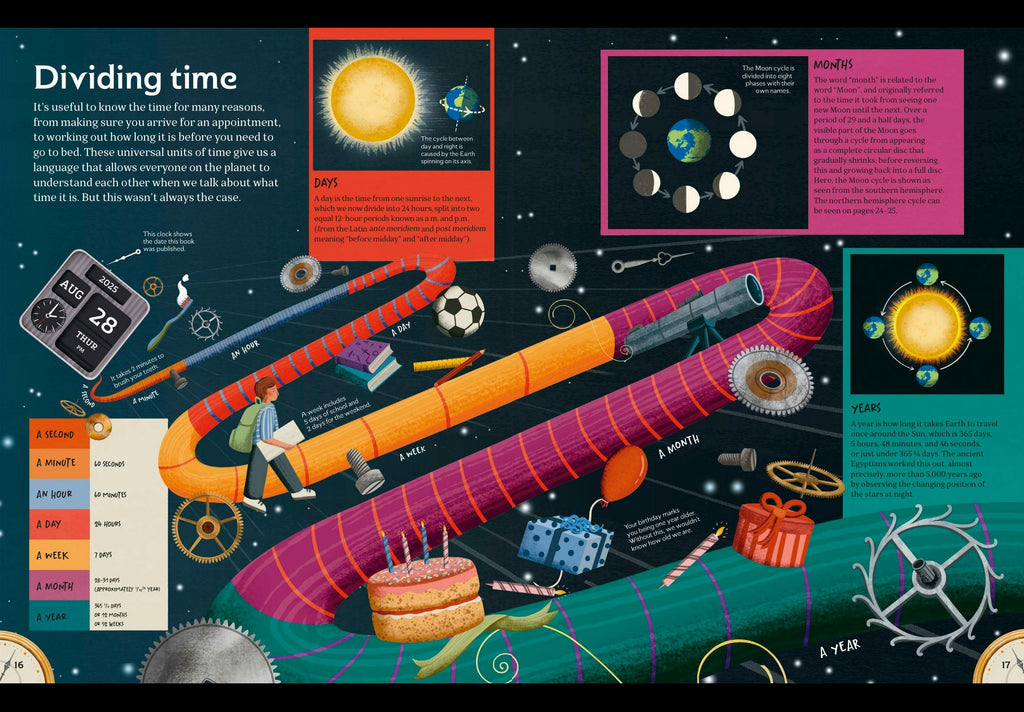 About Time will help them learn how to tell the time on a variety of devices, and about all the different ways humans have tried to do this. Through unique and fun interactive elements, the book will also help children understand how clocks work and even build some time-telling and clockwork devices for themselves!