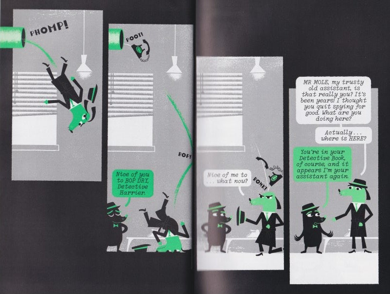 If Agent Harrier doesn't find the hole-making culprit soon, none of his books will make sense and the whole series will be doomed! Luckily, he has a plot-hole expert in the shape of his trusty friend Mole to help him out.