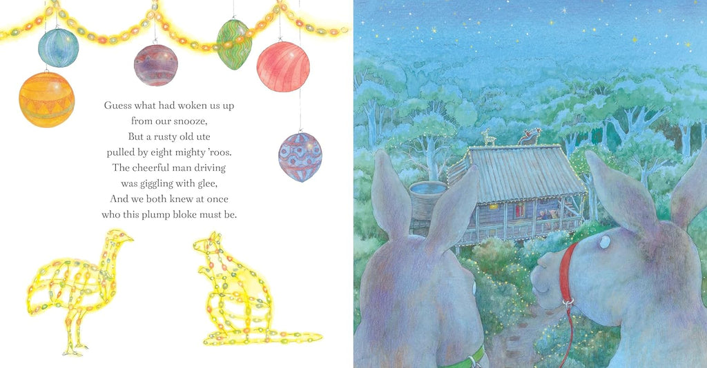 We ran to the screen door, peeked cautiously out, Snuck onto the deck, then let out a shout. Guess what had woken us up from our snooze- But a rusty old ute pulled by eight mighty roos. Christmas in the middle of the Australian summer means Santa has to find creative ways to deliver his presents. Yvonne Morrison's rollicking rewrite of the famous old poem 'Twas the Night Before Christmas gives the original version an hilarious Aussie twist.