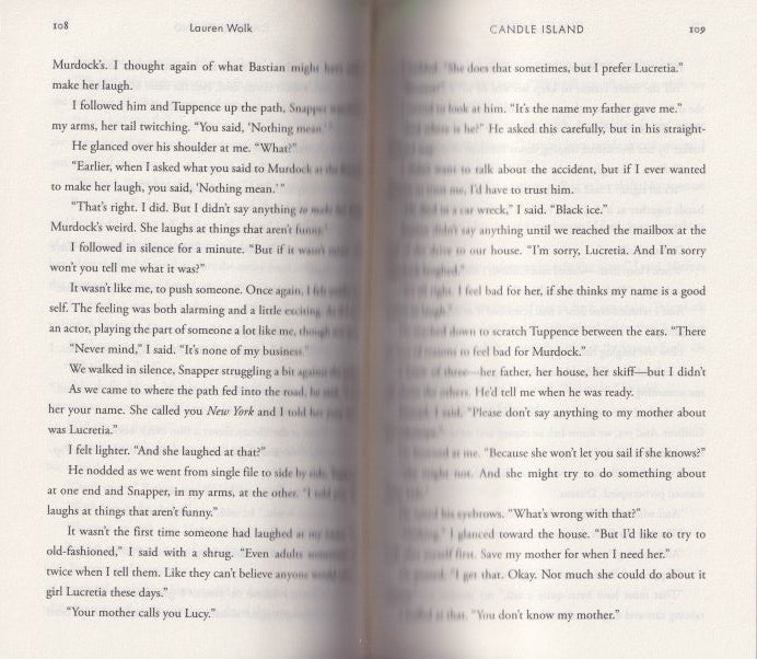 Lucretia and her mother have come to tiny Candle Island, Maine (Population: Summer, 986; Winter, 315) with a secret to keep ... and to escapeâ"escape memories of the car accident that killed her father and escape the journalists that hound her mother, a famous and reclusive artist. The rocky coast and ocean breeze are a welcome respite for Lucretia, who dedicates her summer days to painting, exploring the island, and caring for an orphaned osprey chick. But Candle Island also has secretsâ"a hidden room in her new house, a mysterious boy with a beautiful voiceâ"and just like the strong tides that surround the shores, they will catch Lucretia in their wake. With an unforgettable New England setting and a complex web of relationships old and new, this is a powerful story about art, loss and the power of being true to your own voice.