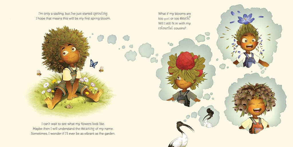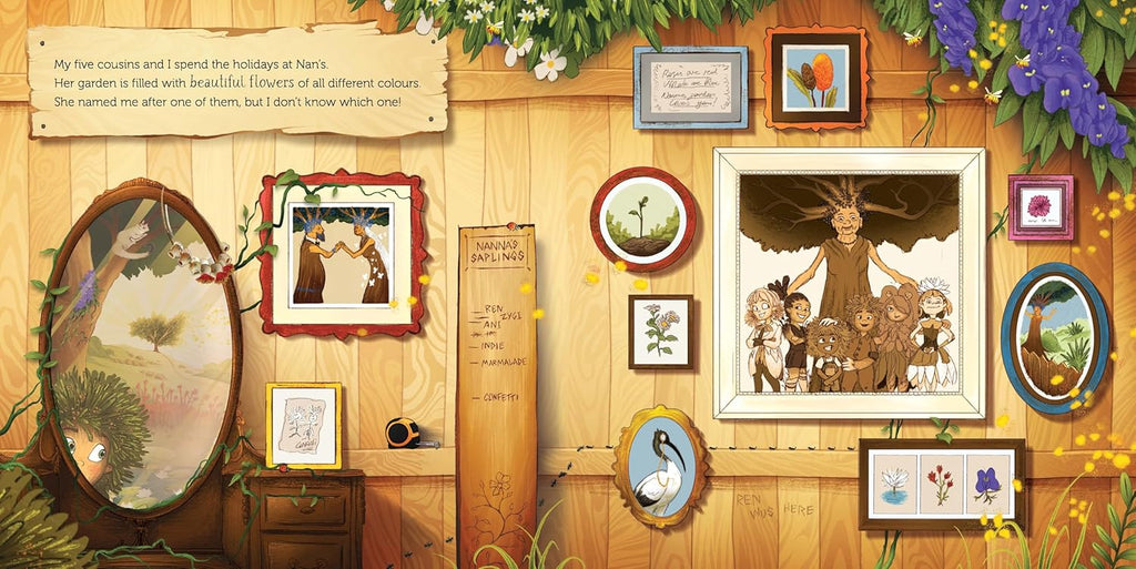 Welcome to Nan's garden, a wonderland where kangaroo paws play soccer, water lilies dive, and lilly pillies do science experiments. Confetti is on a mission to find out who they'll grow up to be – a wistful waratah, lorikeet-laden grevillea, or perhaps a frolicking fern?