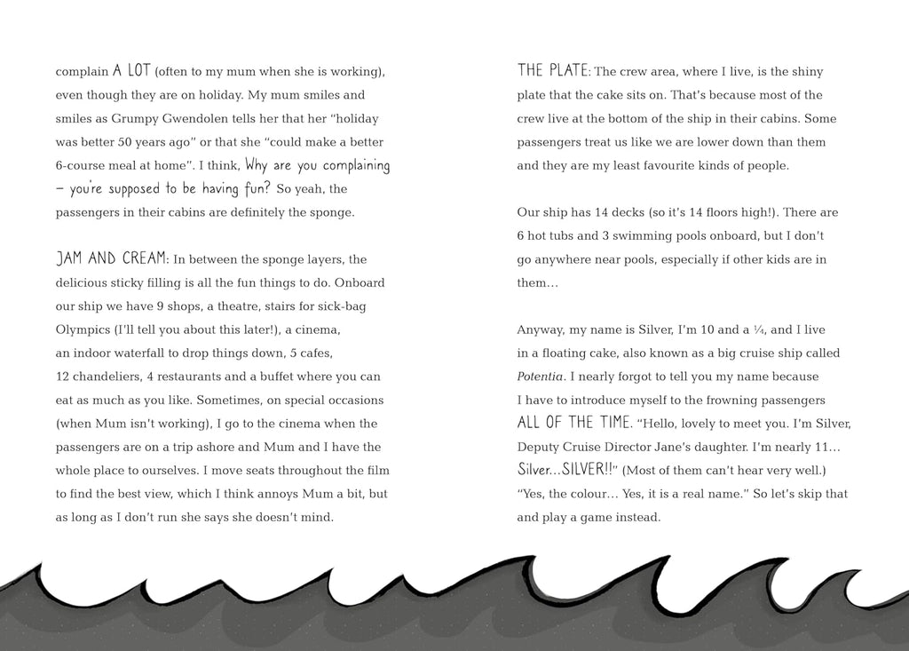 Jump on board with Silver, the Cruise Ship Kid, in the hilarious new detective adventure series from debut author and West-End actress, Emma Swan.There's 4 things you should know about me:1. I live on a cruise ship2. My name is Silver. Yes, really3. I've never had a best friend my own age :( 4. I'm definitely not a detectiveSomehow, though, I'm now investigating the CASE OF THE MISSING MEGA-EXPENSIVE WATCHES. But, I've got a plan. If I can solve the crime, then surely the kids on board will want to be friends with me. Right? I've had lots of help (interference) from the Gang, but I won't tell you about them because they are all over 80 and prefer playing bingo to solving crimes.