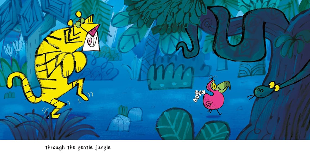 A blissfully carefree dodo takes a stroll through a very gentle jungle, across a very friendly swamp and over a very soothing sea . . . completely unaware that, not only is his walk full of peril, but he's being stalked by a VERY hungry tiger! What will happen when they enter the very dangerous grass?