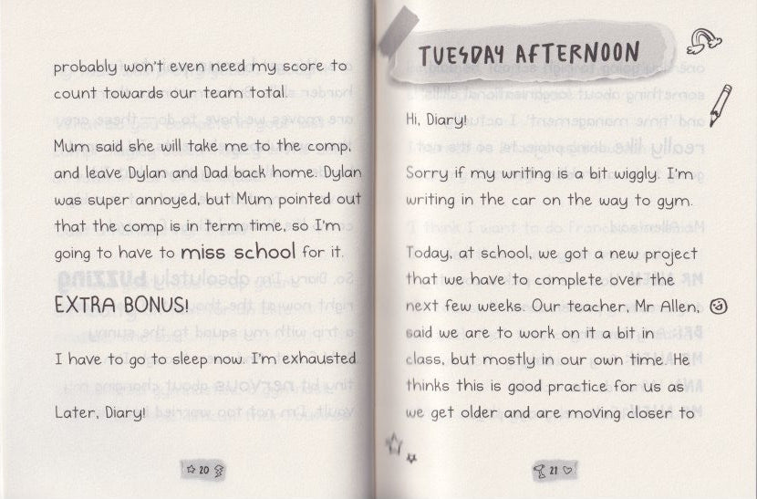This is my diary. Come with me as I chase my dreams! Georgia has a lot happening. Her squad has qualified to compete in a national competition which excitingly means a road trip! But it also means preparing a scary new vault to compete. Plus, she has a big school project due at the same time as the comp - Eek!