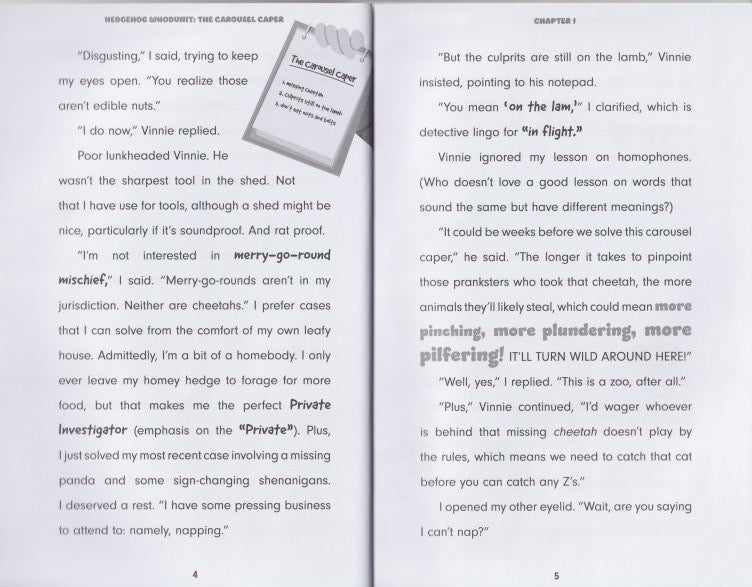 Hedgehog Whodunit: The Carousel Caper is a delightful and engaging chapter book that encourages young readers to solve puzzles and think critically. It's sure to inspire budding detectives and provide animal enthusiasts with endless enjoyment.