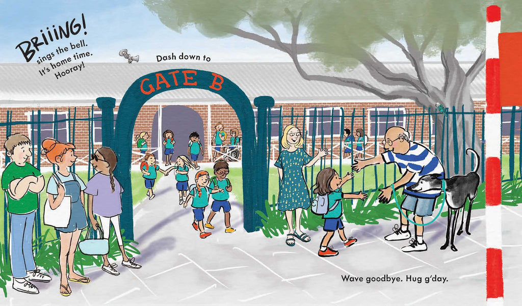Wave goodbye. Hug g'day.