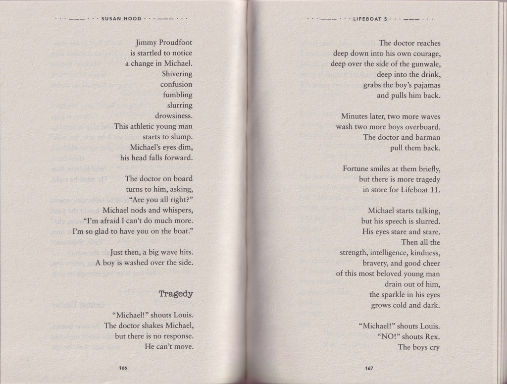 In the wake of Lifeboat 12 comes a “gripping, harrowing” (Publishers Weekly) World War II novel-in-verse by acclaimed author Susan Hood about two very real girls who clung together for dear life when their evacuee ship was torpedoed, their lifeboat capsized, and they spent nineteen hours in the Atlantic Ocean, waiting for rescue.