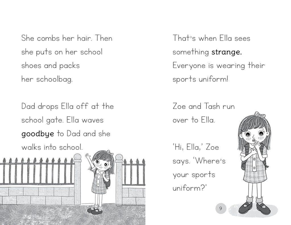 It's Sports Day at school. But Ella forgot! And she is the only one not wearing her sports uniform. Can Ella still have a fun day?