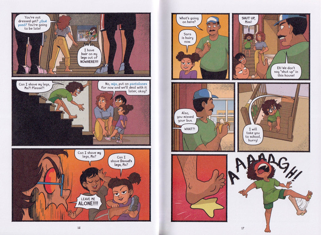 When Sara wakes for the first day of sixth grade, she’s horrified by the sight of fuzzy black hair sprouting from her legs – and her parents won’t let her shave!