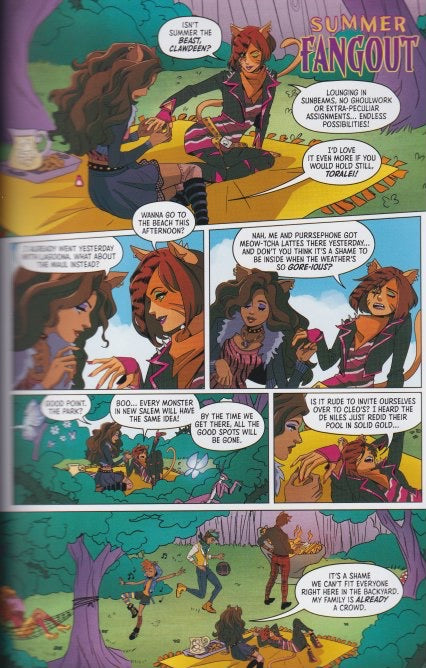 Ghouls and boos are heading back to Monster High for a new scaremester in the first volume of this new comic series! While they'll certainly be serving lurks in the hallway and haunting study howl, rumor has it that trouble is brewing. Draculaura, Clawdeen Wolf, Cleo de Nile, and Frankie Stein have never met a bad scare day or monstrous problem they couldn't fix togetherâ¦but Drac's in over her fangs with new responsibilities, Clawdeen and Cleo aren't speaking, and Frankie's life may be in danger. The beasties need a fresh start, and what better time than the new scaremester? Surely a reconciliation is lurking just around the dark and foreboding coroner.