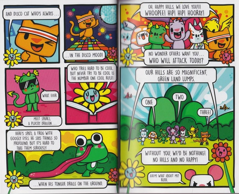 Welcome to HAPPY HILLS, where you’ll find epic LOLS, dramatic ACTION scenes, a scattering of MILD PERIL, and MUCH MORE!
