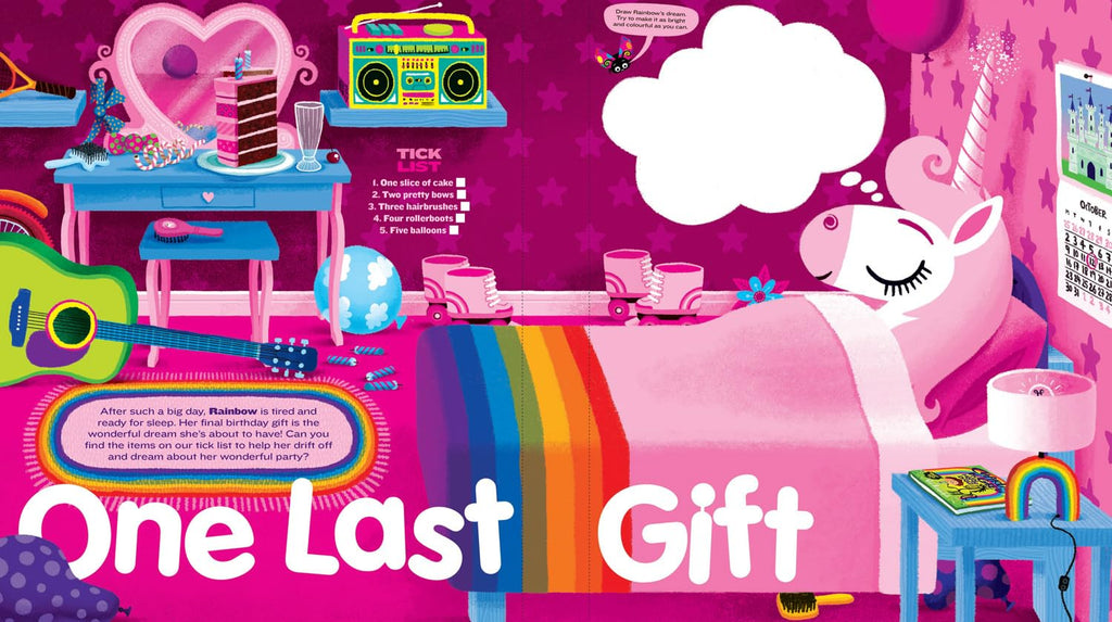 Gallop away to a land of clouds, rainbows and unicorns in this magical activity book from bestselling and award-winning creator, Rob Biddulph. Featuring fairy-tale castles, starry skies and enchanted lands, these pages are full of mazes, puzzles and colouring along with Rob's simple drawing instructions for creating your own incredible unicorns!