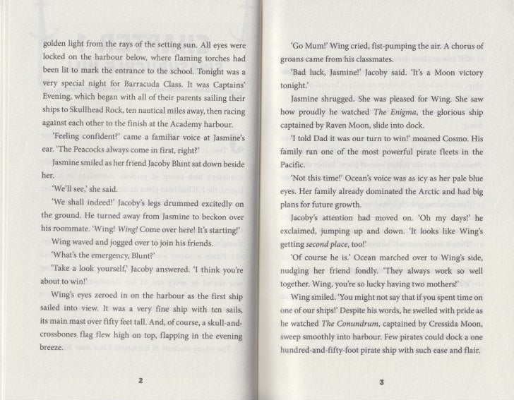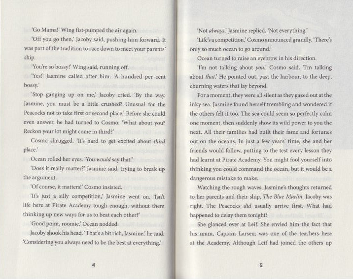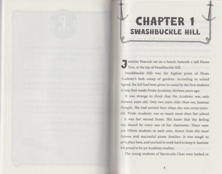 Jacoby Blunt and Jasmine Peacock are students at the elite Pirate Academy. This is no ordinary school. Lessons range from Knots Class and Sailing to Combat Workshop. The students hail from famous pirate families. The teachers are all legendary sea captains. The pressure is always on and friendship is everything.