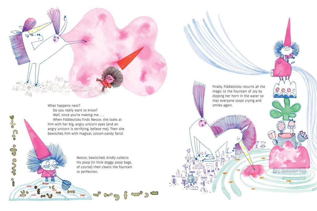 Nothing about a magical horse with a neon pink mane, galloping through an extraordinary world full of wonder. I definitely won’t tell you about the miraculous Fountain of Joy or the rainbow poops as fluffy as whipped cream. And I promise not to say a word about any mischievous gnomes named Nestor.