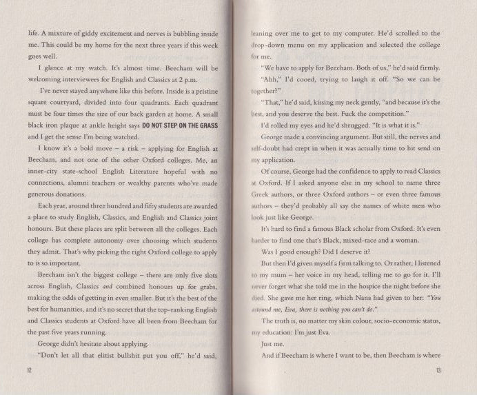 Eva has one dream: to study English at Oxford University. Not only will she receive a world-class education – getting into Oxford is a pass to freedom.