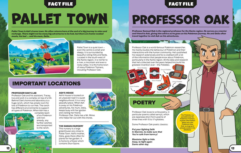 This essential guide is filled with key episode moments, characters profiles, tournament stats and Pokémon facts. From Ash’s home in Kanto, to the mountains and lakes of Sinnoh, to island life on Alola, and finally the Wyndon Stadium in Galar, this encyclopedia-style compendium follows Ash through his whole Trainer career.