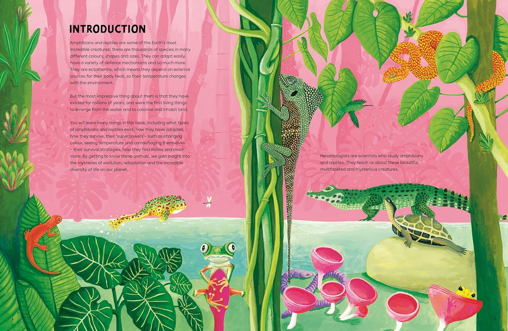 Journey through the fascinating and surprising world of reptiles and amphibians. Some can change colour, while others see temperature. Some can swallow prey whole, and others cry blood to scare off predators. Some can even regrow their lost tails! Discover where amphibians and reptiles come from, how they have survived for millions of years, why they are important for the planet, and all about their superhero-like abilities.