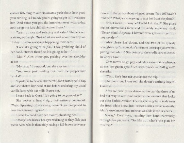 But Alex and Molly have an important mission this weekend too: help their friend Cora get her crush May to fall for her. But in between ice skating, snowball fights, and matchmaking schemes, it becomes obvious that both of them have another self-imposed mission this weekend: to not reveal the huge secrets they’re each keeping from one another. Secrets about their post-college plans that just might threaten to tear them apart.