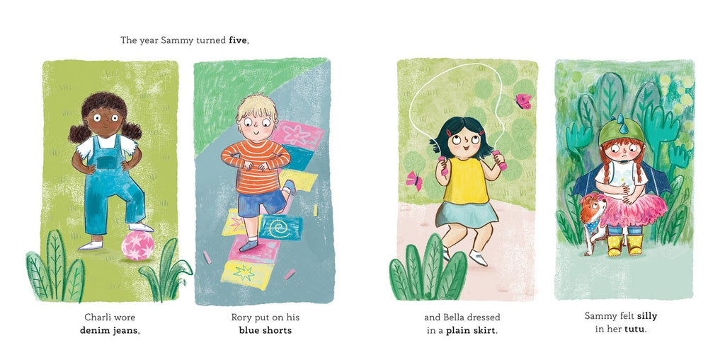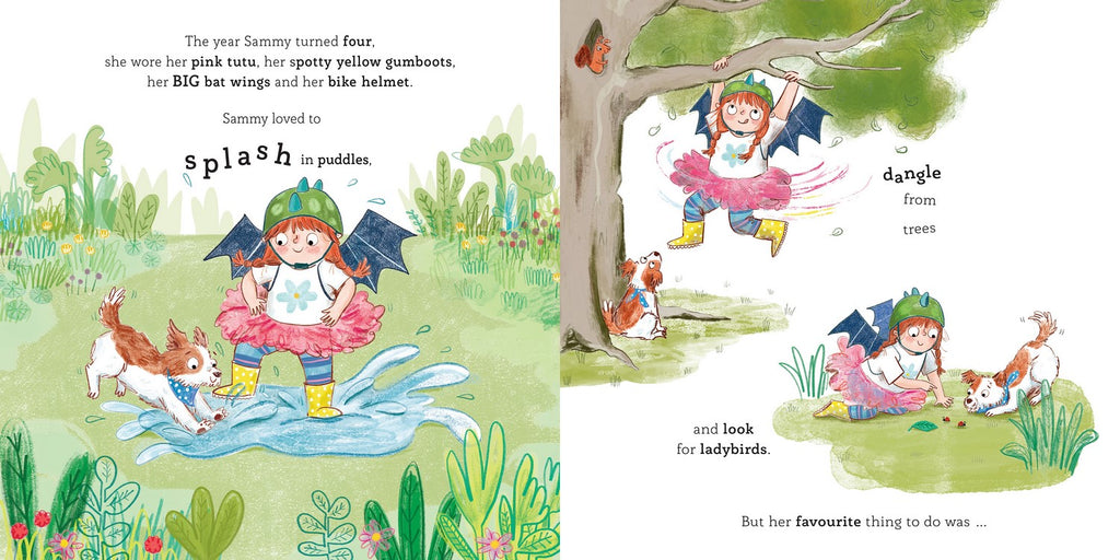 Sammy loves to splash in puddles, dangle from trees, look for ladybirds and skip and dance down the path to her very own beat.