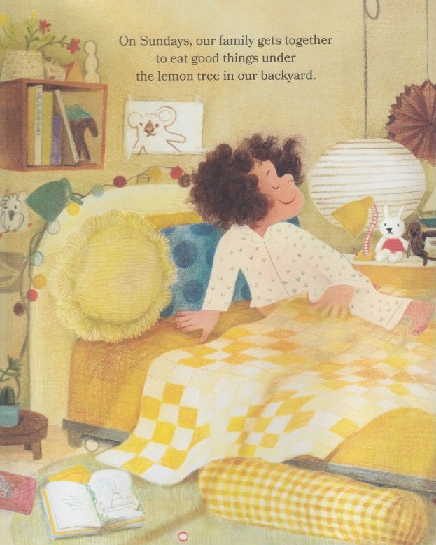 Sundays Under the Lemon Tree follows a young child's memorable Sunday, with the smells and sounds of family cooking, the adventure of collecting seawater to make ricotta, and the triumph of learning to bake a special family apple cake. Busuttil Nishimura's prose and Yim's illustrations bring to life the comforting rituals and loving bonds that make Sundays special.
