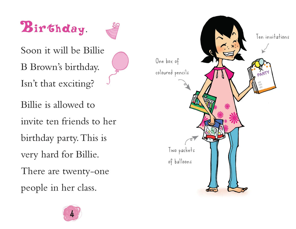 With more than ten million books in print around the world, Billie B Brown has helped a generation of readers love learning to read. Each book is carefully designed with short chapters, decodable vocabulary and lots of illustrations, and there are no mountains of text or super-tricky words to intimidate the early reader. And there's plenty of books in the Billie B Brown series to explore!