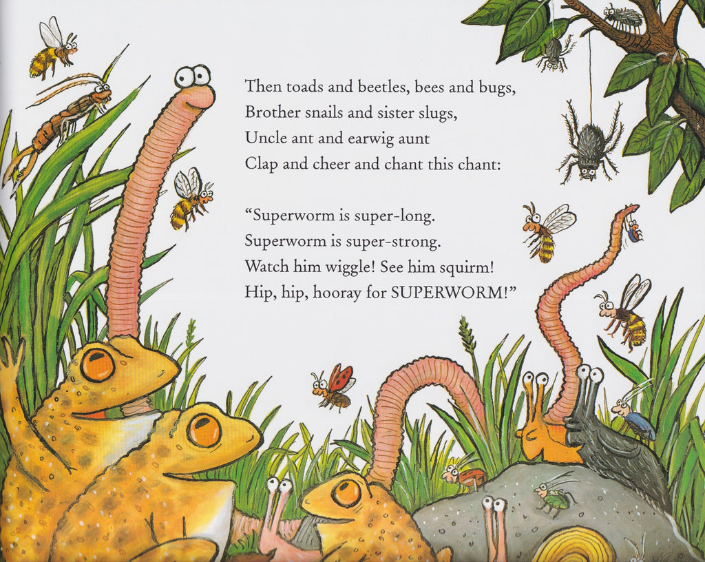 Hip, hip, hooray for Superworm! Never fear, Superworm’s here! He can fish Spider out of a well and rescue Toad from a busy road. But who will come to Superworm’s rescue, when he’s captured by a wicked Wizard Lizard? Luckily, all of Superworm’s insect friends have a cunning plan ...