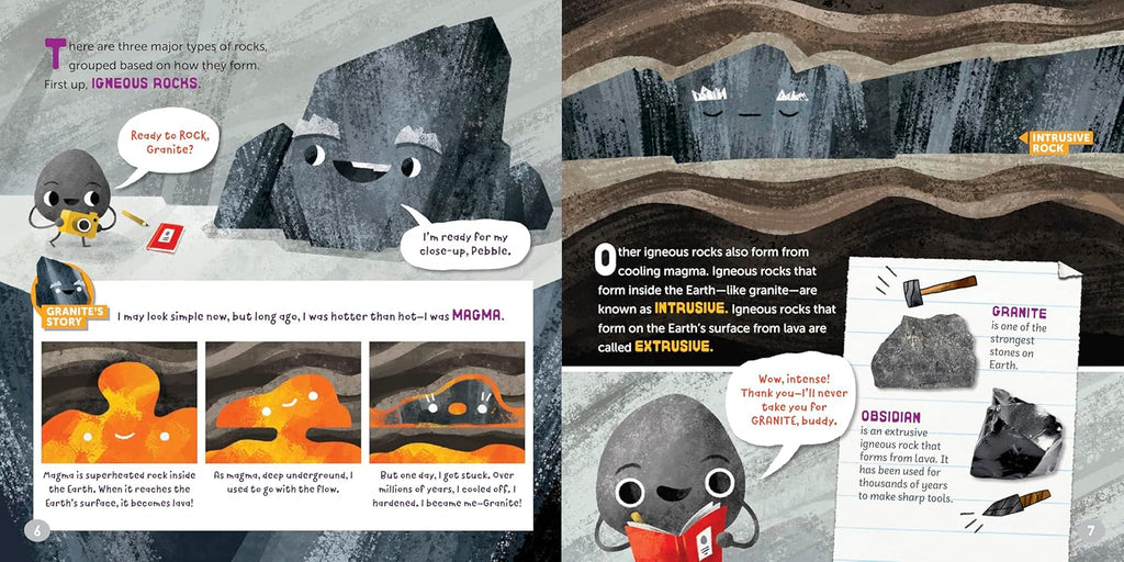 Pebble the Rock Reporter is ready to interview a whole host of rocks and minerals to get the scoop on the fundamentals of geology.