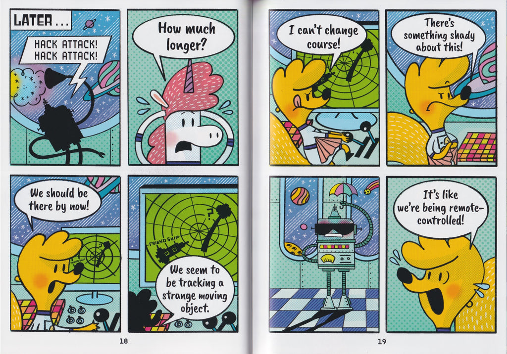 Alert! Alert! The Friend Ship’s been hacked! A pack of evil pugs have infected Bobo with a computer virus and taken Astrid and Stella hostage! Unable to rescue his friends alone, Bobo builds a sidekick—Zobo, a friendly new robot with a talent for smashing things. The two will have to work together to free Astrid and Stella from Pugnacious D and his hungry hounds.
