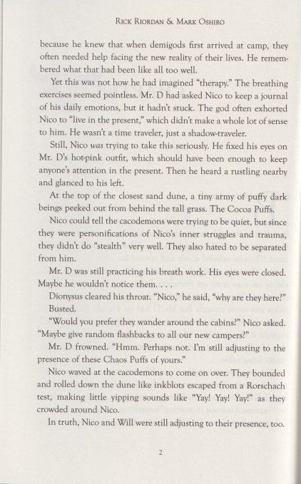 A few months after returning from the depths of Tartarus, demigods Nico di Angelo and Will Solace agree to join Nico's half-sister Hazel Levesque at Camp Jupiter.