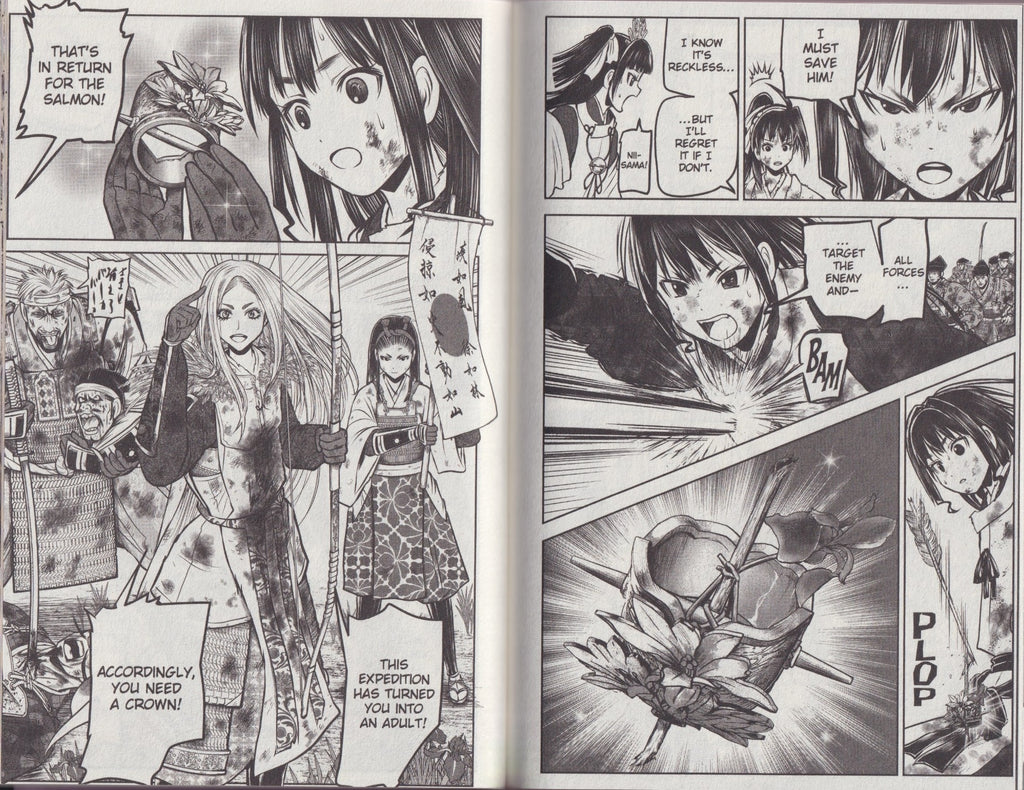 In the midst of the battle with Moronao’s forces, Tokiyuki crosses swords with Fubuki, his former retainer. Despite their old friendship, Fubuki is no longer the comrade Tokiyuki once knew, and is determined to not only destroy Tokiyuki, but to take over the Ashikaga as well! Elsewhere, Akiie launches a brilliant maneuver to outflank Moronao. But even if it succeeds, can Akiie’s exhausted army take on Takauji’s fresh reinforcements?
