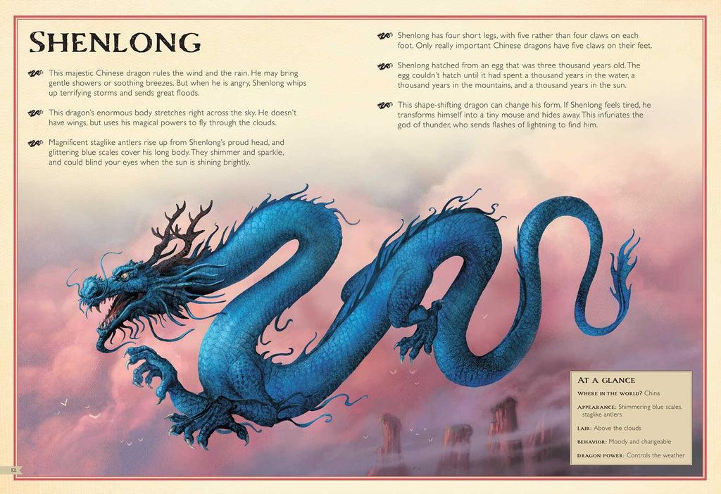 Fascinating facts accompany each illustration so you can find out which dragon darted from tree to tree, how Shenlong was master of the rain and wind, and which creature could hypnotize people with its blazing eyes.