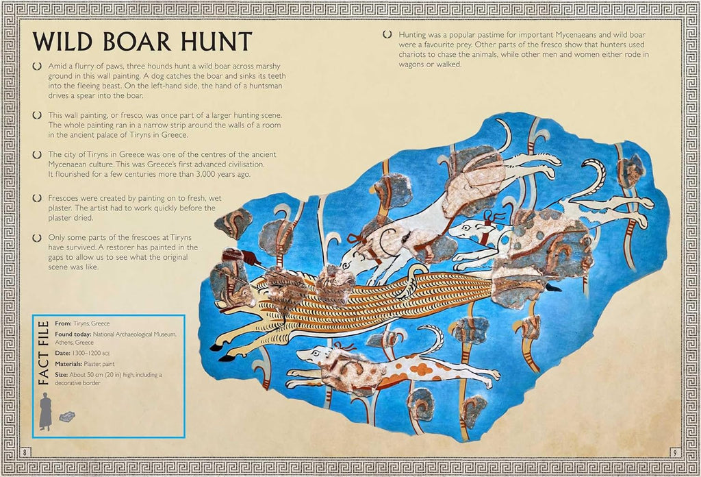 Each of the 36 treasures represents an artistic era or style, from the Bronze Age, through the Archaic and Classical periods, to the Hellenic. Easy-to-read bullet points explain key art techniques, such as how artists created a fresco, a mosaic, a pottery drinking cup, or a stunning gold bracelet. Through world-famous and iconic treasures, the book shows what it was like to live in ancient Greece, whether you were rich or poor, famous or anonymous—covering everything from the myths that underpinned rituals to the customs at after-dinner parties. Every treasure is accompanied by a Fact File, detailing its date, size, and materials, as well as where it can be found today. At the back of the book, a map shows where each treasure was discovered.