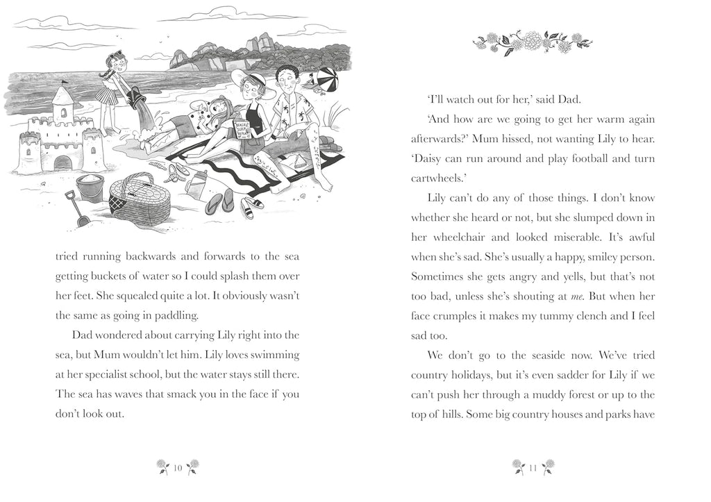 The summer holidays have finally arrived, and Daisy is bored. Daisy is glad she won't have to see her worst enemy Chloe for a while but she longs for a proper holiday at the seaside, building sandcastles, eating lots of icecream and maybe even spotting a mermaid in the sea. Daisy's sister, Lily, wants to come too but, she uses a wheelchair which can make trips to the seaside tricky. Especially with all that sand!