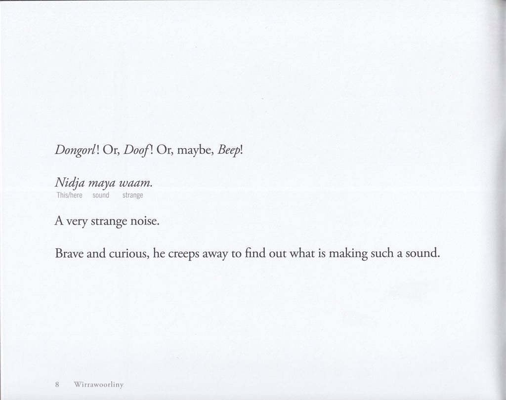 An orphaned boy is struck by a djanak, a devil of Noongar Country, and burnt on a fire and eaten. Afterwards, a mysterious whirlwind lifts up his ashes and he is reformed limb by limb. Wirrawoorliny is a story about how Country, language and spirit can guide young people home.