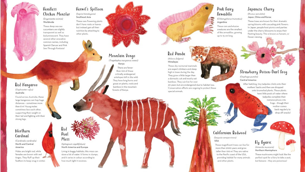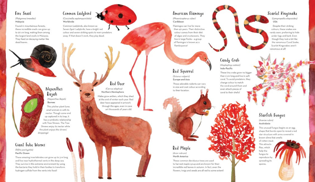 Here is a celebration of the stunning plants and animals of our wonderful world, from bright pink American Flamingoes to warm yellow Sunflowers, glowing green Leaf Sheep, vivid orange Sumatran Orangutans, stripy black-and-white Plains Zebras, and many more.
