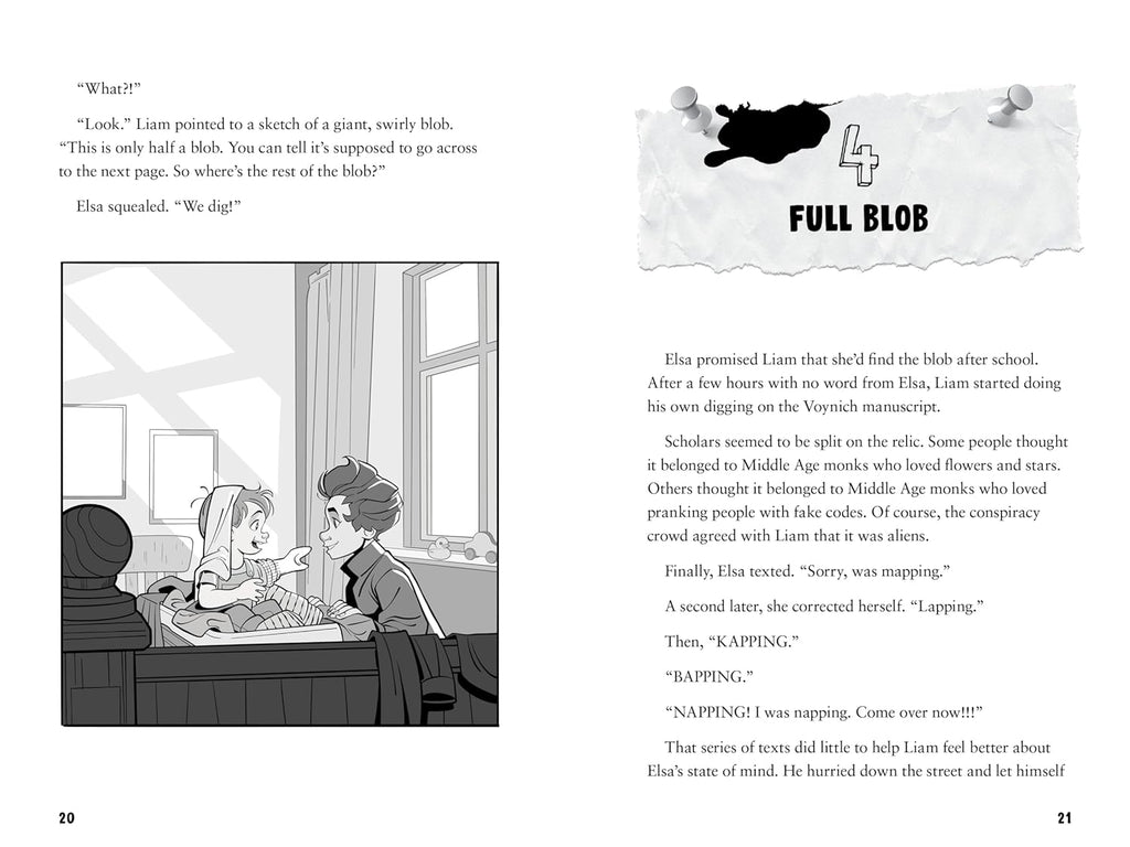 To find the professor, Elsa and Liam will need to start digging up answers to these long-buried secrets. Their search starts with the Voynich Manuscript—a book from the Middle Ages that puzzles historians and codebreakers to this day. They’ll travel to an alternate dimension, where they’ll meet Dwayne “The Rock” Johnson (the geologist, not the wrestler) and discover the shocking origin of time slime. Finally, with the help of the World’s Worst Time Machine, they’ll attempt a journey to the very center of time.
